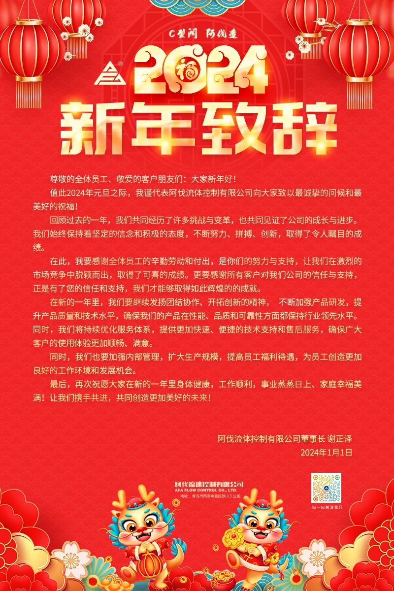 值此2024年元旦之际,我谨代表壹号娱乐流体控制有限公司向大家致以最诚挚的问候和最美好的祝福!
